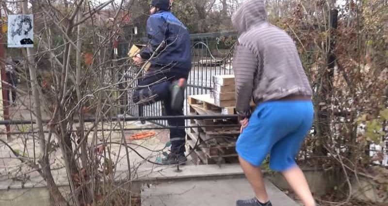 В момента тази тясна пътека реално не стига до общинската улица, защото опънати червени ленти забраняват преминаването. Поради ремонт на опасна сграда, която се руши върху територията на държавния имот, е забранено преминаването към общинската улица. Имало случаи дори на пропаднали колички с бебета на това място.
